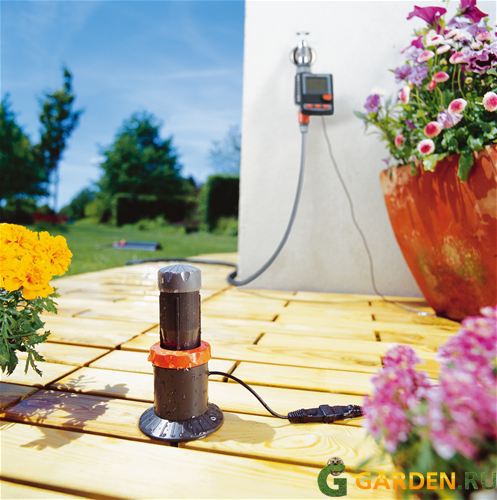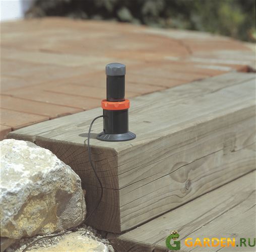 - Датчик дождя GARDENA предназначен для контроля за выпадением естественных осадков в системах автоматического полива. Если дождь начинается в процессе полива, то полив прекращается, либо не начинается, если идет дождь. Оптико-электронный принцип работы датчика обеспечивает быстрое срабатывание устройства, что обеспечивает экономию воды. Датчик дождя можно разместить на грядке рядом с растениями, либо установить на твердую поверхность. Датчик снабжен кабелем длиной 5 м со штекером. Для работы устройства необходима алкалиновая батарея 9 В (не входит в комплект поставки). Такой батареи хватает примерно на год работы устройства. Примечание. Датчик предусматривает возможность подключения к следующим устройствам GARDENA: клапаны системы полива C 1060 solar plus, C 1060 plus, C 1030 plus (арт. 1866-20, 1864-20, 1862-20), таймеры подачи воды T 1030 plus, T 1030 Duo plus, T 1030 card (арт. 1860-20, 1870-20, 1830-20), системы управления поливом 4040 modular, 4030 и 6030 (арт. 1276-20, 1283-20, 1284-20), регулятор (арт. 1250-20) и система полива горшечных растений (арт. 1407-20).