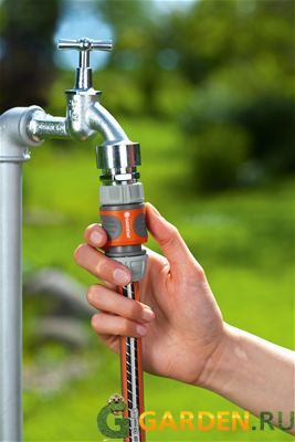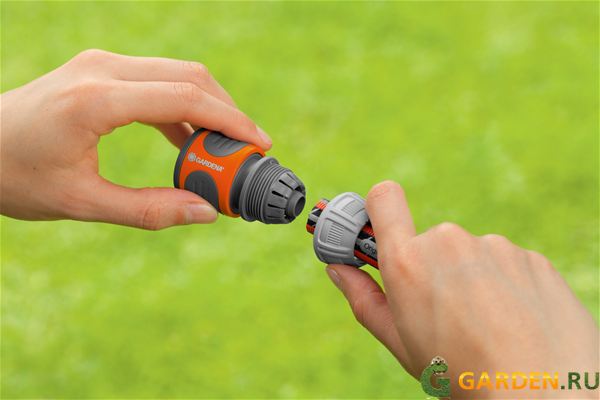 - Коннектор GARDENA легко снимается, если его потянуть на себя.